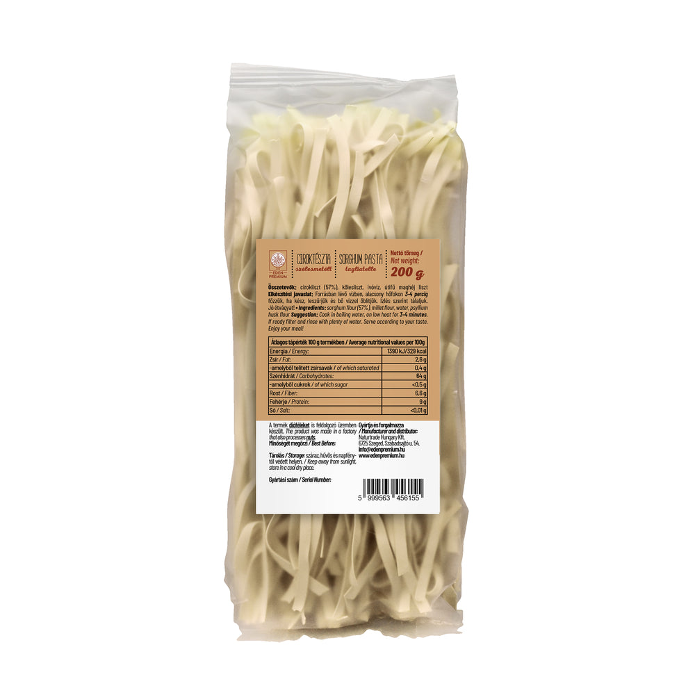Ciroklisztből készült gluténmentes szélesmetélt száraztészta kölesliszttel.