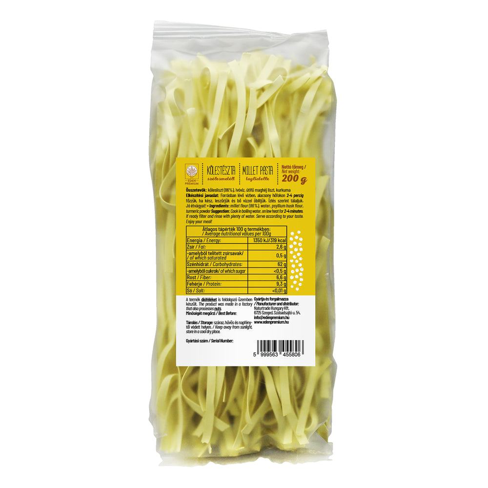 Az Eden Premium kölestészta saját recept alapján készül tésztaüzemünkben. Kellemes sárga színét a leheletnyi kurkumának köszönheti, állagát főzés után is megtartja. A tésztához nem használtunk tojást és szóját sem.
