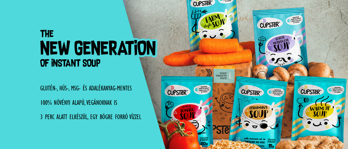 A Cupster első vegyes pakkja instant vegán zöldséglevesekből, gluténmentes tésztával! Ezek a termékek mindig kéznél vannak (egy tenyérnyi csomagolásban!), amikor egy gyors falatra van szükséged, de nem szeretnél lemondani a speciális étrendedről, vagy tisztább alternatívát keresel. Próbáld ki az instant levesek új generációját!