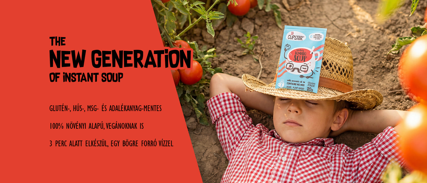 A Cupster instant vegán paradicsomleves gluténmentes tésztával készül, füstös ízvilággal! Ez a termék mindig kéznél van (egy tenyérnyi csomagolásban!), amikor egy gyors falatra van szükséged, de nem szeretnél lemondani a speciális étrendedről, vagy tisztább alternatívát keresel. Próbáld ki az instant levesek új generációját!