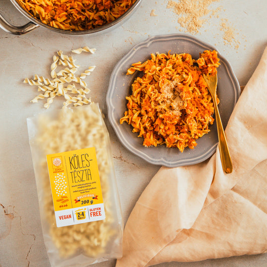 Az Eden Premium kölestészta saját recept alapján készül tésztaüzemünkben. Kellemes sárga színét a leheletnyi kurkumának köszönheti, állagát főzés után is megtartja. A tésztához nem használtunk tojást és szóját sem.